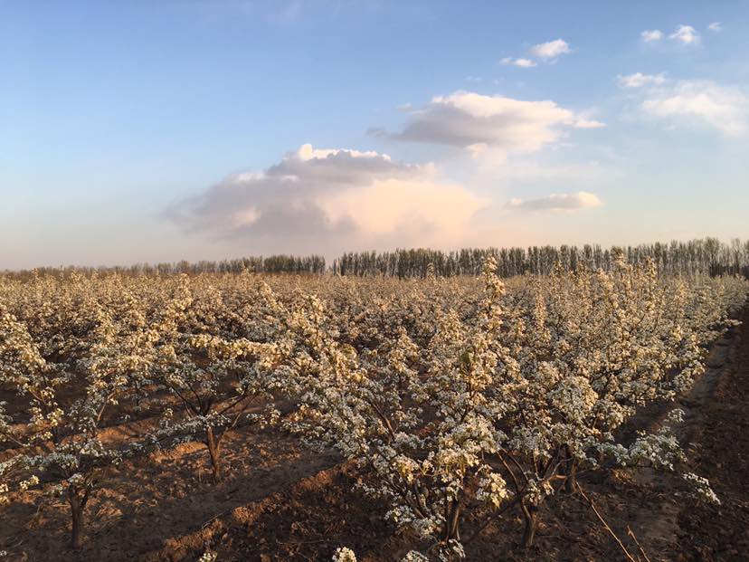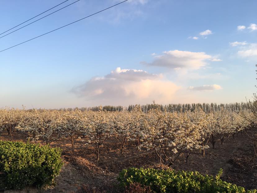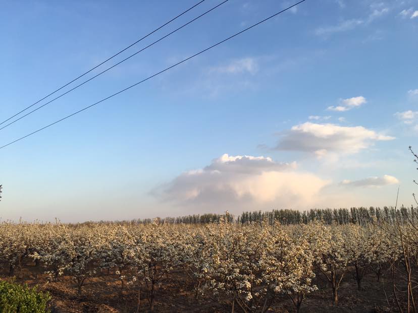 昨天大风,刮走了阴霾天,于是就有了蓝天白云梨花海的美景