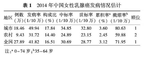 根据国家癌症中心公布的数据,2014年全国女性乳腺癌新发病例约27.89万例,占女性恶性肿瘤发病16.51%,位居女性恶性肿瘤发病第1位。