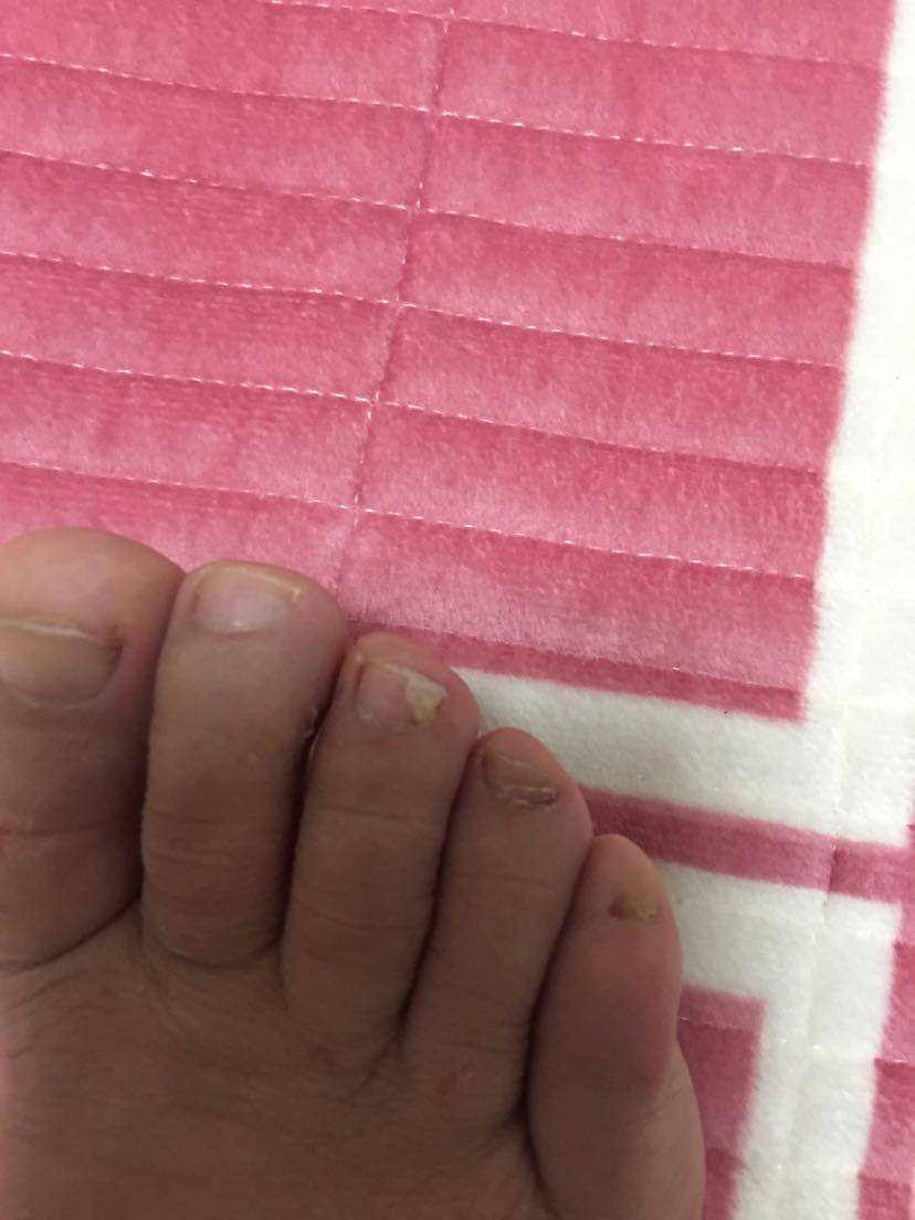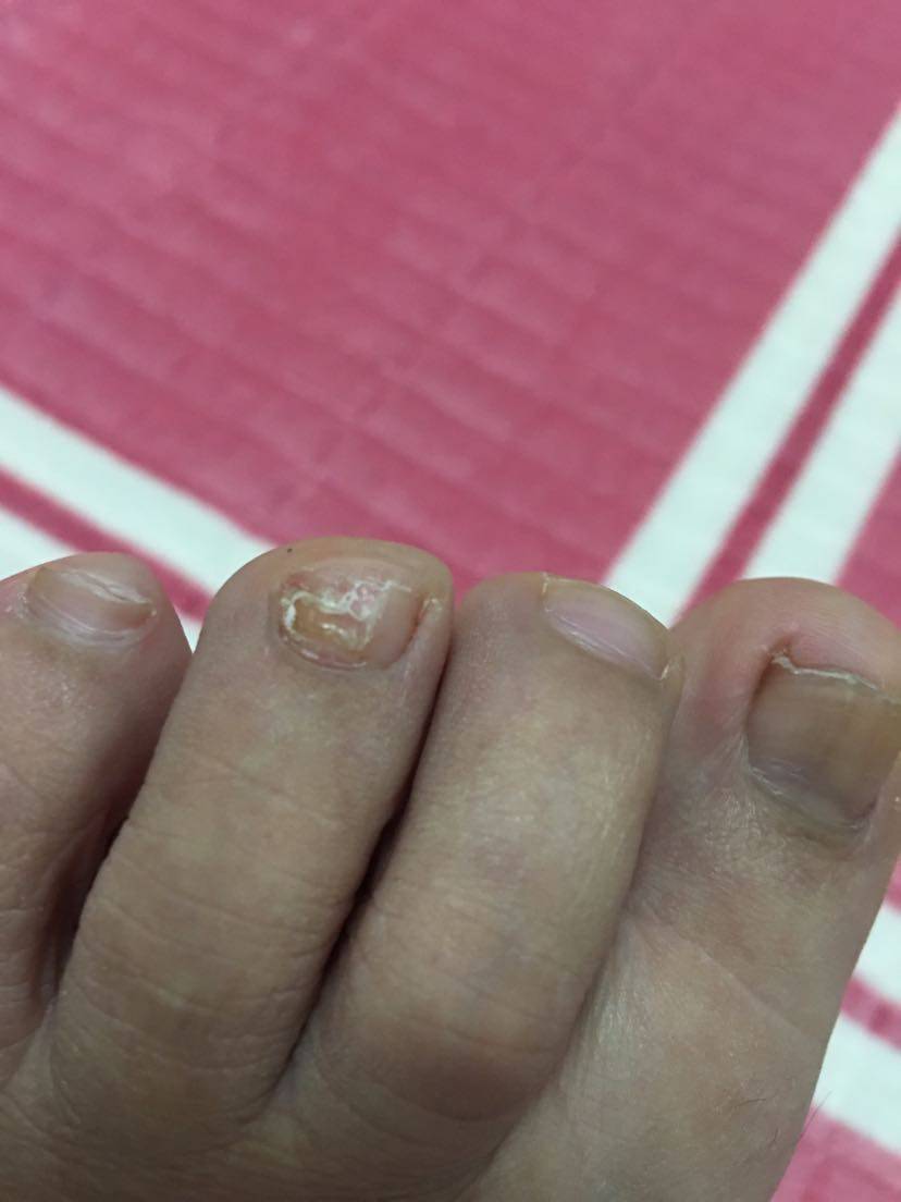 第一张中间的那个脚指甲,是我抠了的,刚开始发现的时候是那指甲边上直接起来了,也不痛也不痒,我就直接给那指甲抠了,掰了一半下来,之后也没管他就成了现在这样了,现在另外一只脚的指甲也这样了,不知道是咋回事,就图二这样,这是要长灰指甲吗?还是别的东西