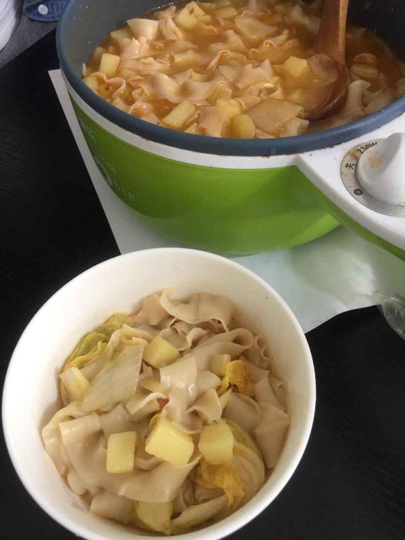 新来个女孩子,爱抽烟,省饭钱买烟。于是我们两,搭伙,天天煮面条吃。。