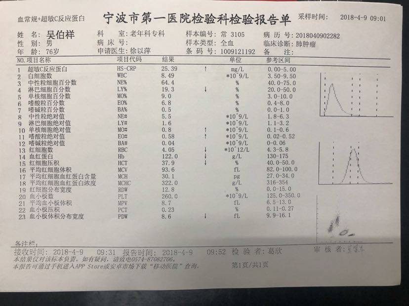 昨日、老豆再一次单药注射了I药500毫升!好几个朋友知道后都来问我、进展这么厉害为什么这次还是继续单药不换方案?这不是耽误治疗吗!谢谢各位关心非常感谢!为什么这次我没换方案又一次单药?我想再博一把!因这次9号去做了血常规和肿标、没有做CT(怕CT时间太近对身体有影响、这次就不做了)、血常规依然和之前差不多、但肿标莫名其妙下来了、再加上现在咳嗽几乎没有了、痰也少了淡了、这两肿标我家特敏感、特别是SCC、每次只要有0.几的波动去做CT的话肿瘤都会很对应、所以我才抖胆再博一把继续单药上!医生也建议再上单药I、十天后再去做肿标、半个月后去做CT!虽然肿标不是金标准、但我不想放弃这次再博一次的机会!经历多了、一切都平淡了!如果是之前我肯定满世界的激动....过山车坐怕了、不敢激动不敢奢望!只想抓住任何一个希望任何一个博的机会!(不良反应:在我家I的不良反应不轻松、昨天上午打、昨天下午又开始怕冷畏寒、全身酸痛刺麻、疲劳乏力非常严重,这些天血糖到正常了、我试着停了几天胰岛素血糖也基本正常、我每天测血糖、高了我就打胰岛素、正常就停胰岛素)