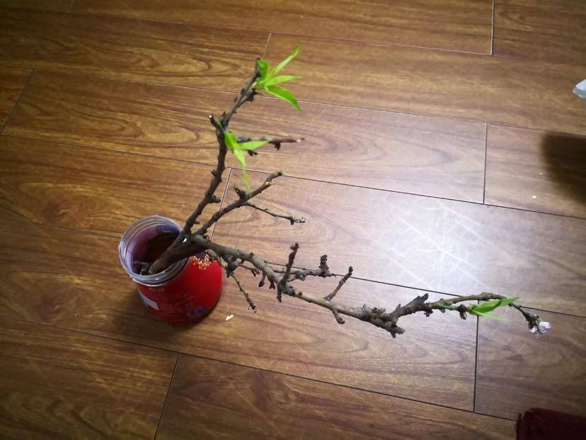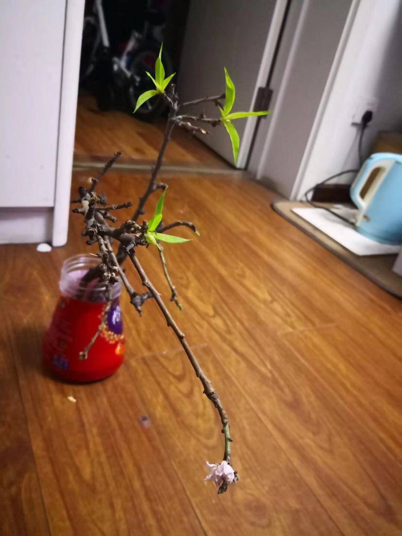 春节时候在楼下捡了几根桃树枝,放在了客厅门后准备用来辟邪,顺便放了点水,结果开春了,居然发芽了。全家人都好开心,说会有好兆头的,我也好开心啊……