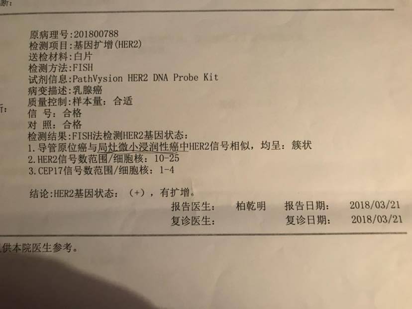 这病真是千变万化,原位癌的很少fish阳性的,这个阳性,还是要靶向治疗吧