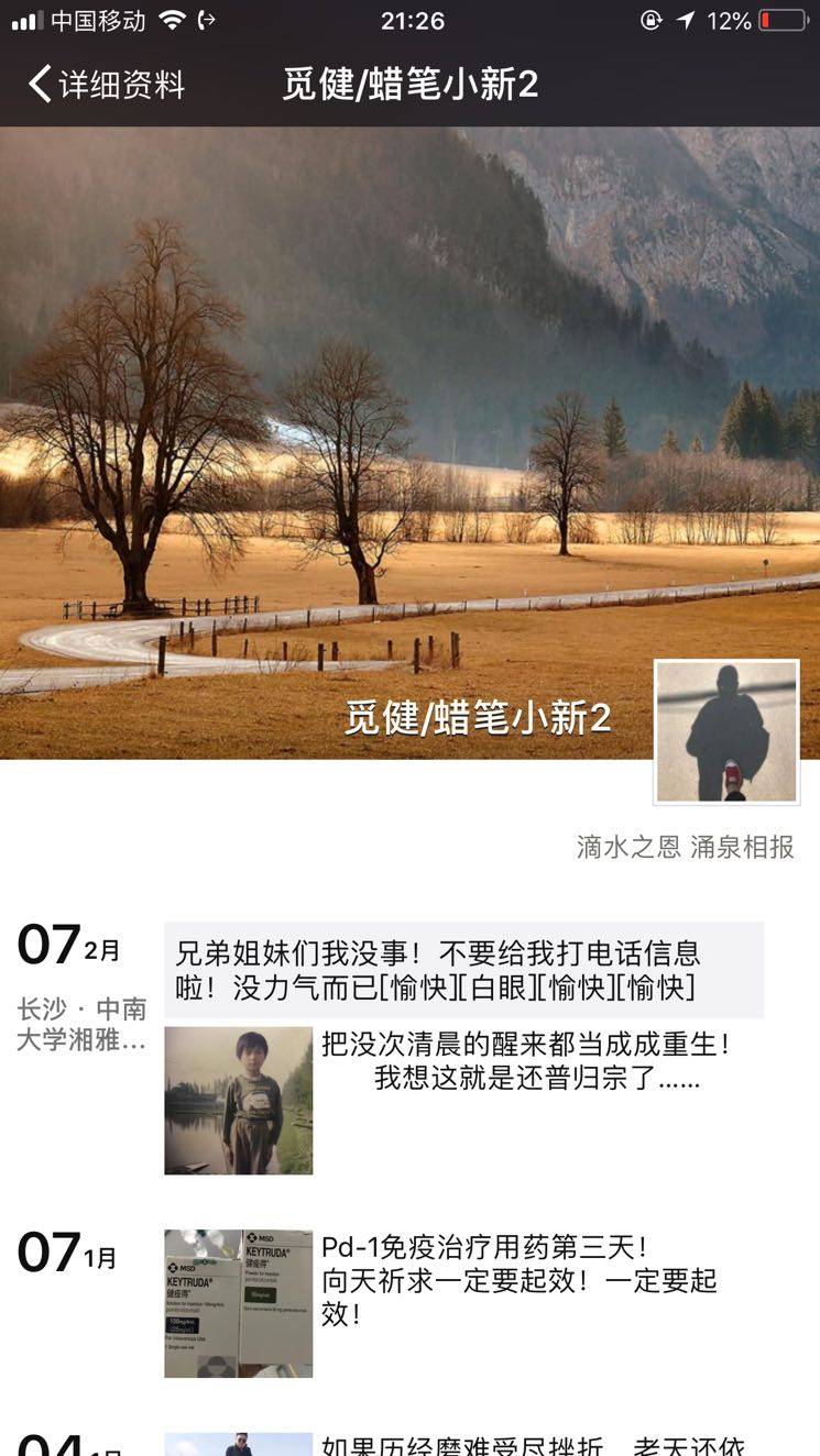 ,本来不想提起的,希望他知道大家有牵挂他。