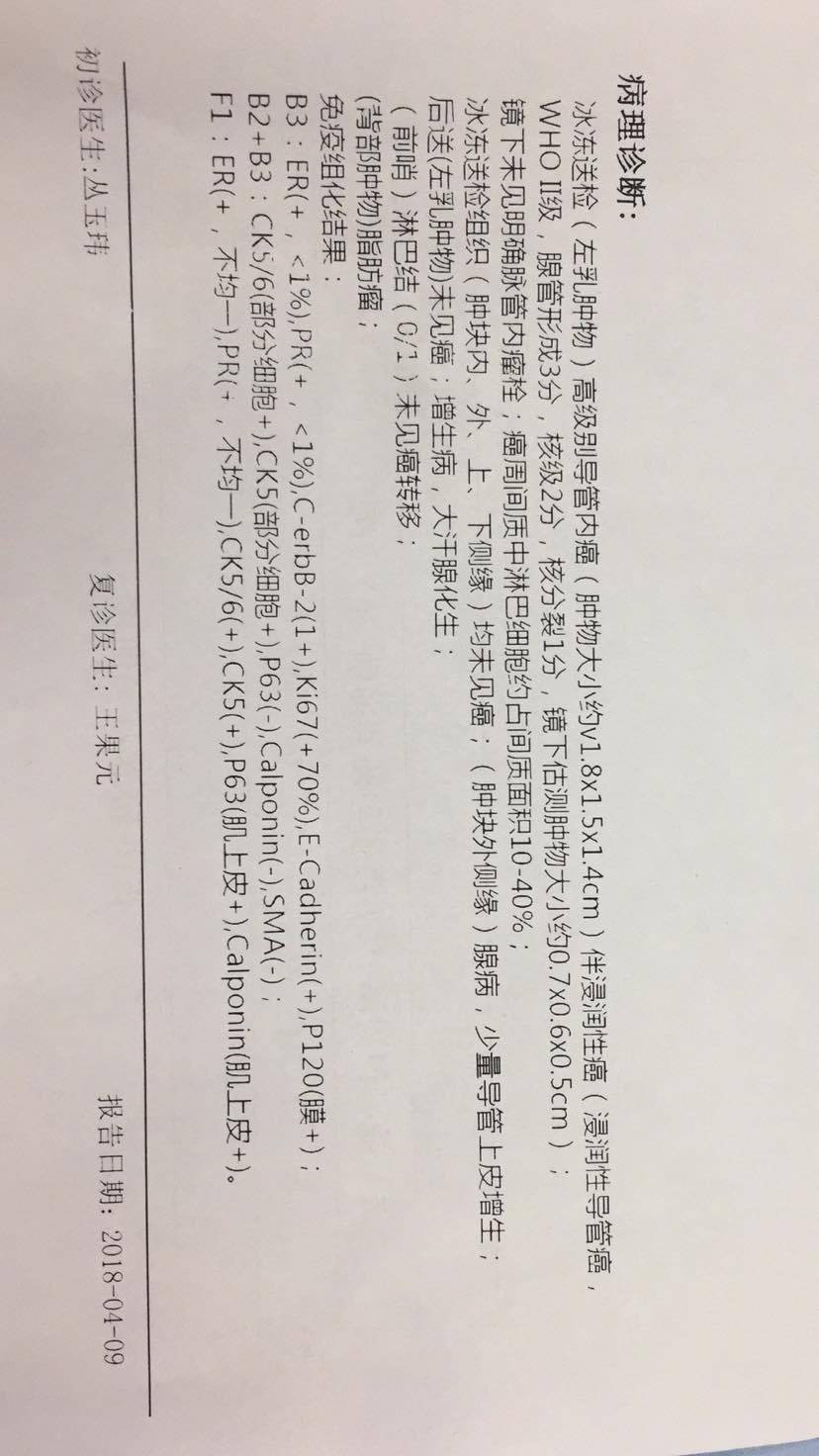 三阴,早期,没有脉管内瘤栓,预后很好,你很幸运