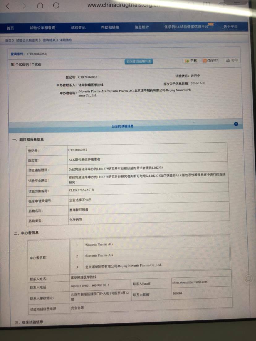 这个是ALK受益临床试验,不知道初诊的可不可以入组,需要的朋友可以自己也查下,了解下。