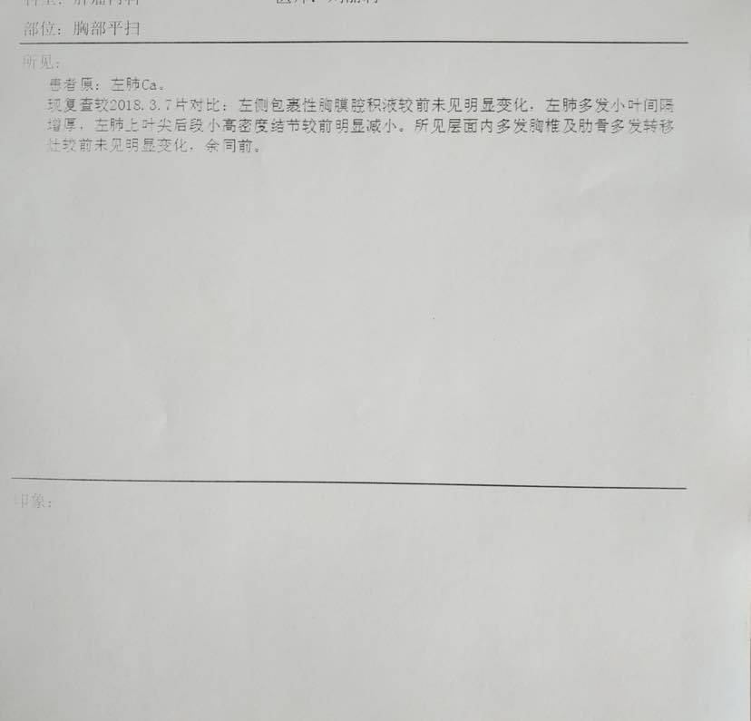 两个月又过去了,爸爸的体感一直很不错。今天拍CT 报告我觉得比3月份的略有好转,图一是3月份的,图二是5月份的,有点纳闷我家一直带瘤生存,为什么所拍的CT 报告单上都没写肿瘤大小呢。希望后面其他的检查也都是好结果。骨转目前在打骨转针,想问一下大家骨转的部分可以放疗吗?