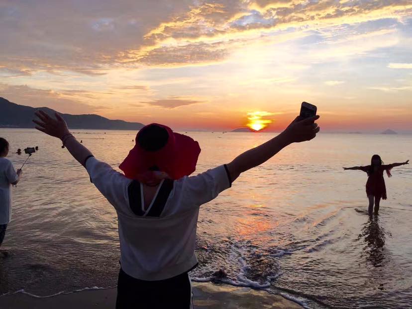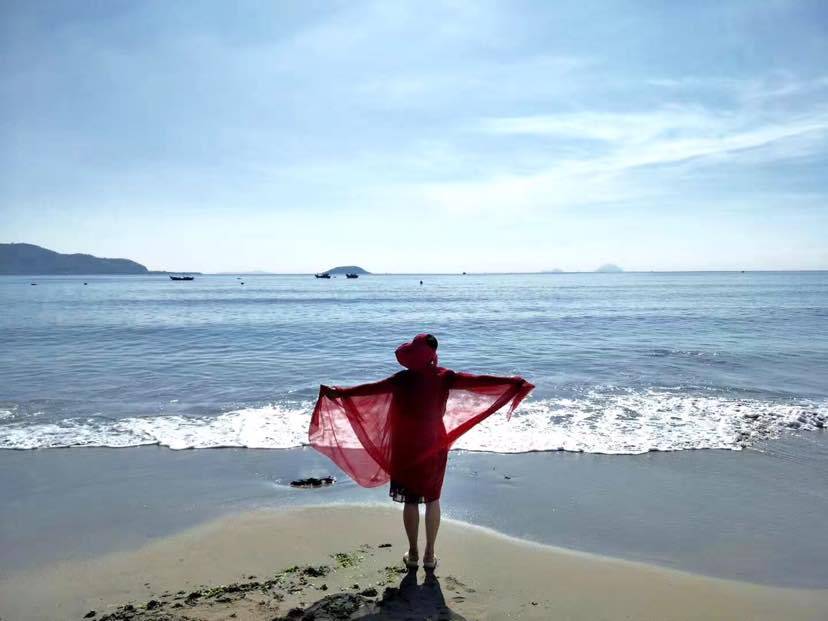 蓝天白云,任海风拂面,拂去心中的躁动,抚平心灵的跌岩,只有那丝丝微波在心头荡漾,我的心随着海风飘荡,随着海风飘向那无边的大海......