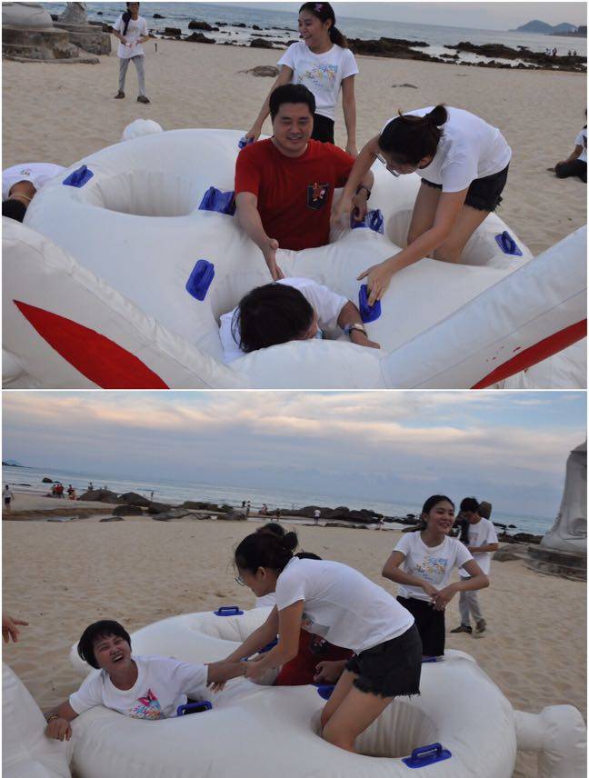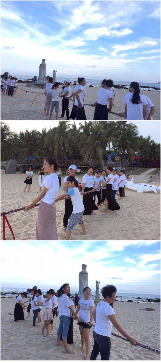 在沙滩上大家一起参与拔河比赛