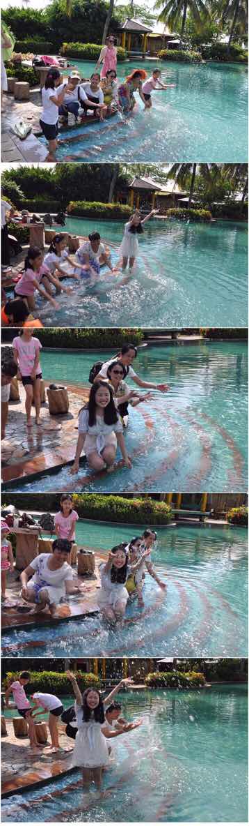 昨晚不会游泳的,第二天都到泳池边戏水,也了个小心愿