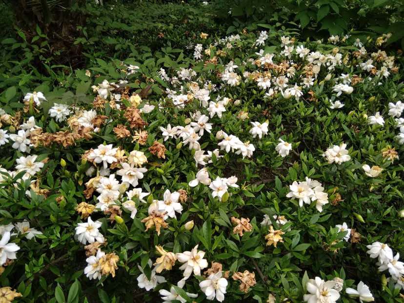 下午沿着湖边又走了4圈,平静的湖面,犹如一面明镜,静静的平铺着,好像时间也随之而停留,湖中有搞卫生的工人在打捞水草,辛勤地工作着,湖对岸树木在湖水的倒影中显得别有风味,小区种植的各种植物生机勃勃、枝繁叶茂, 绍兴位于北纬29°42′02″~30°19′15″,看到小区种植了许多原以为只生长在南方的棕榈树,看来该树常绿的特征越来越被江南人接受和喜爱,边走边欣赏着这一刻平静的美好!沿着环小区的路径走到一处栀子花园地,栀子花花大洁白,芳香馥郁,很喜欢该花的香味!可惜它已日落西山、花渐凋谢……。其实做人又何尝不是这样?我们经历了那不可思议的年代,品尝了那令人难忘的岁月,承受了那不堪回首的痛楚,时代总要向前进,要坚守那永恒的良心、原则和底线,“任凭风吹浪打,我自闲庭信步”。