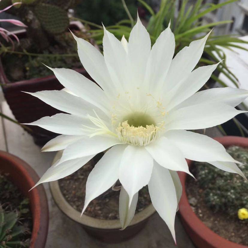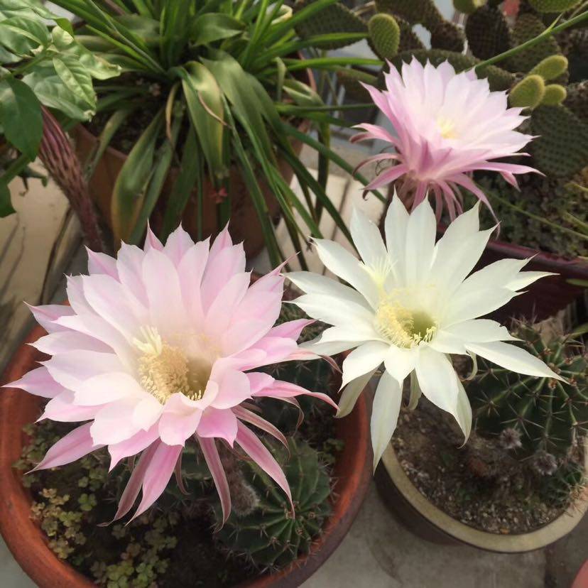 我头一次看仙人球开花,美