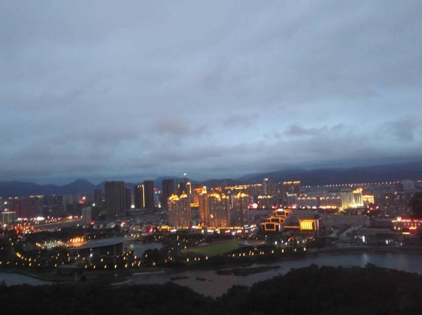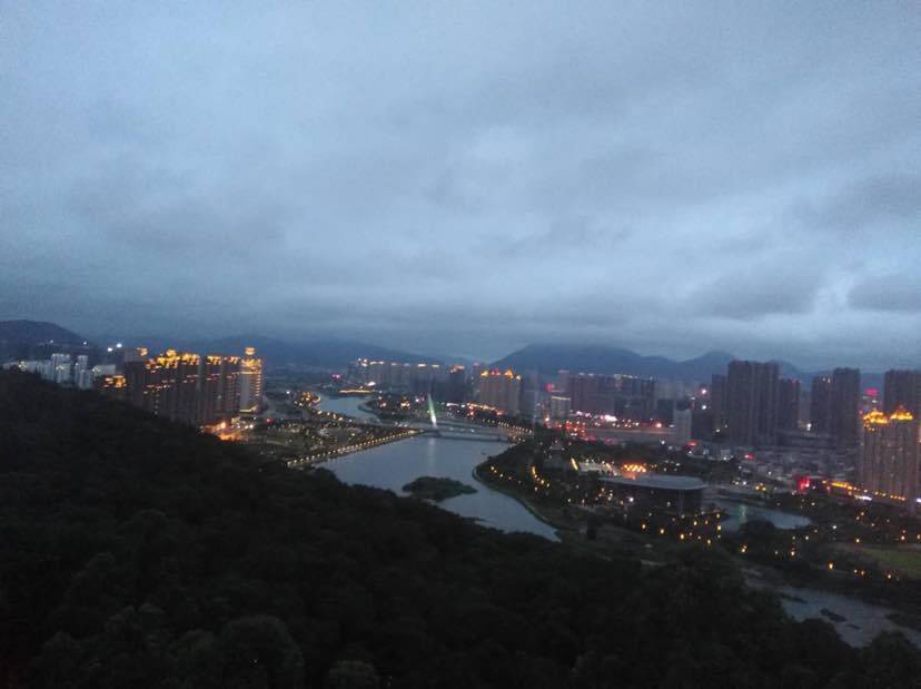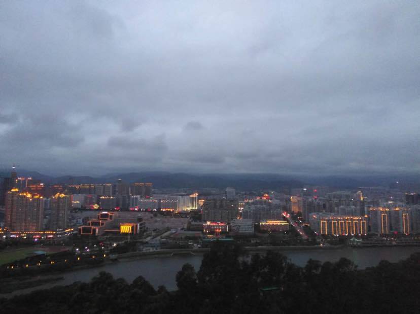 不知不觉中天色已晚,市区华灯初上,夜晚的城市灯火璀璨。尽管家乡还在发展,还不是那么完美,但在我的眼中,已是一道靓丽的风景。