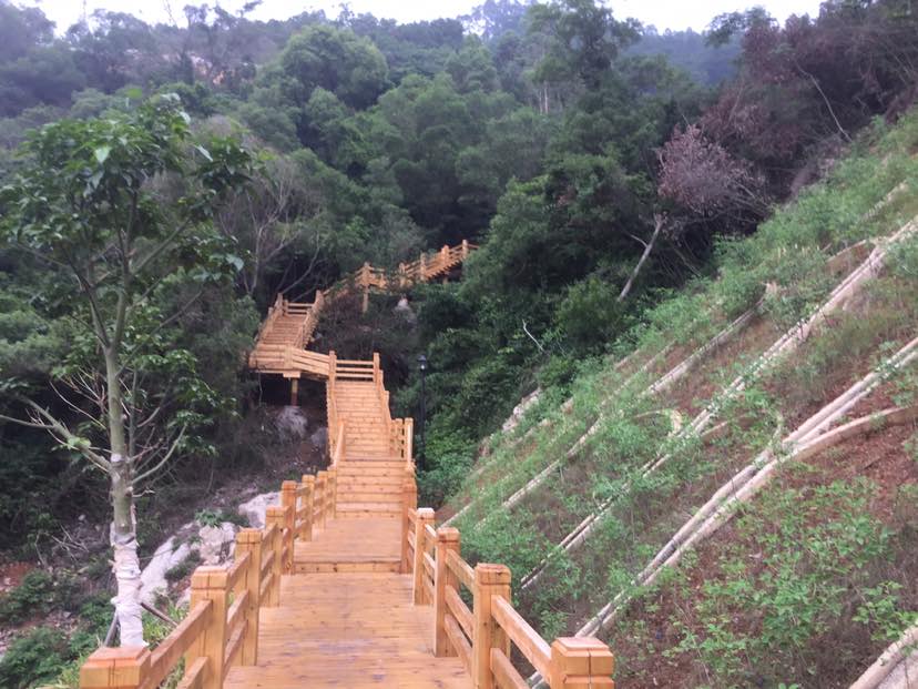 公园里新辟了一条栈道,我们沿着栈道上行,一路风光无限。市区鳞次栉比的高楼大厦和纵横交错的街巷道路,无不展现着小都市的繁华。