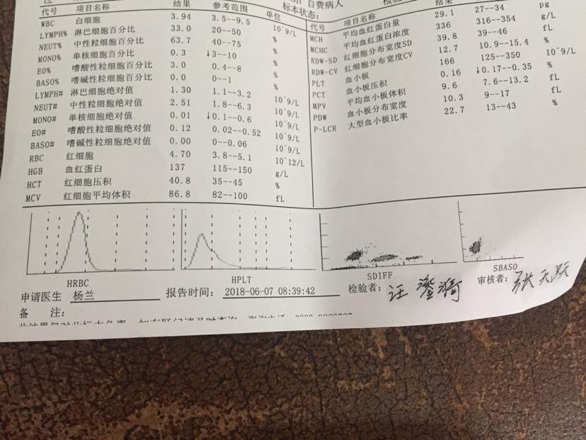 一疗后第五天测了血常规,医生手术去了,我也不太懂,麻烦有经验的姐妹们帮我看一下,谢谢🙏