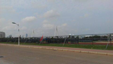 刚入学的小鲜肉们正在军训。