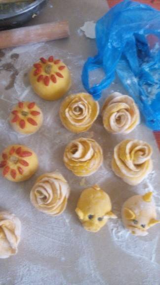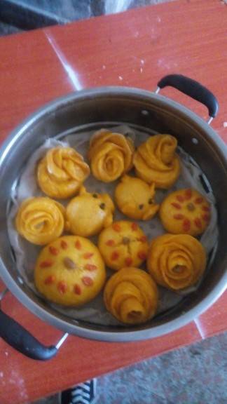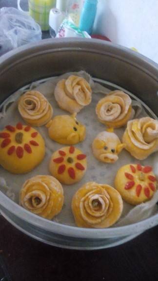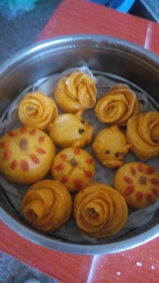 今天闲的没事自己做的南瓜小猪花式馒头,怎么样?漂亮吧?