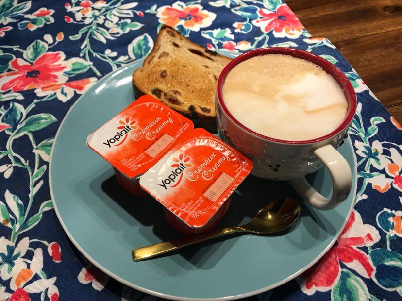 我的简单早餐, 咖啡,面包加酸奶。 吃饱喝足,准备出发去化疗。