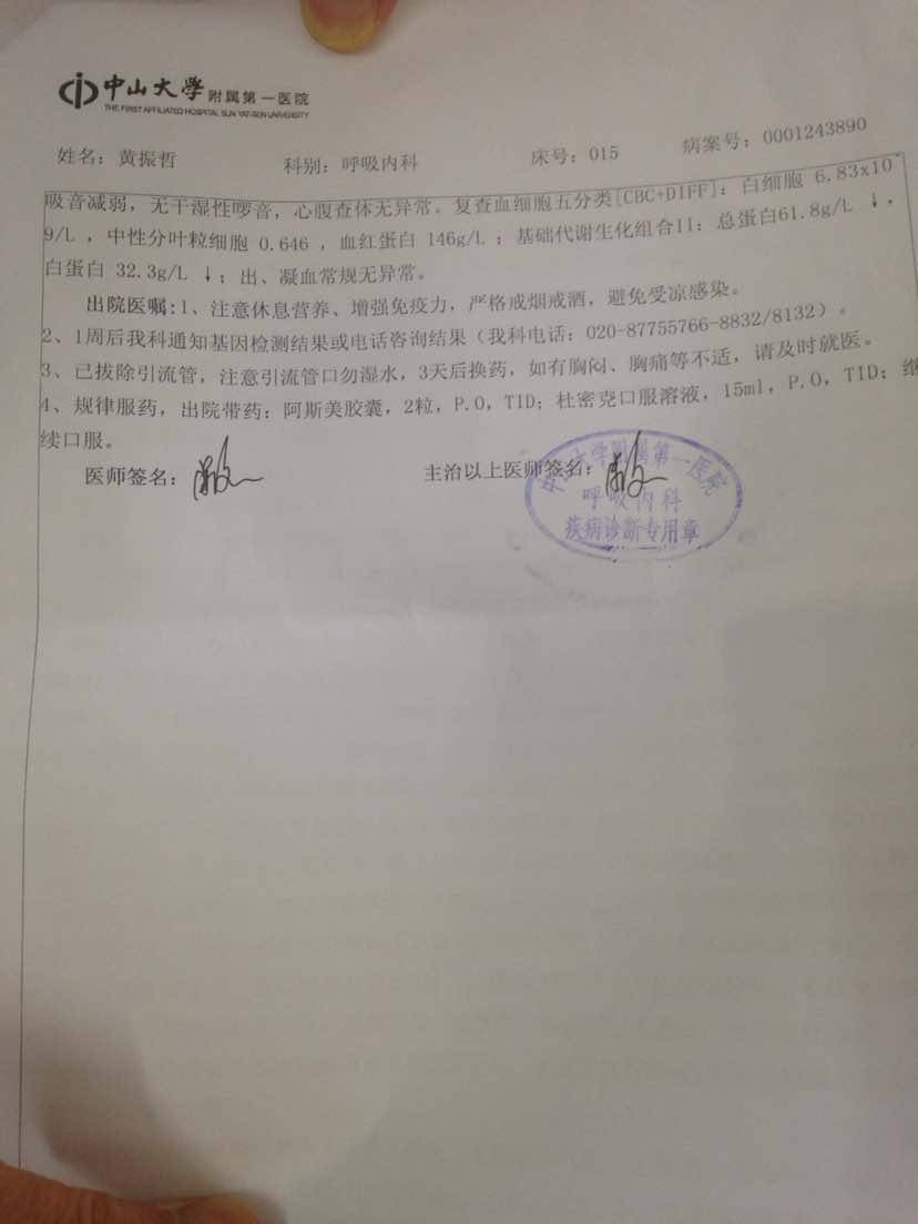 积极配合治疗!没事的!