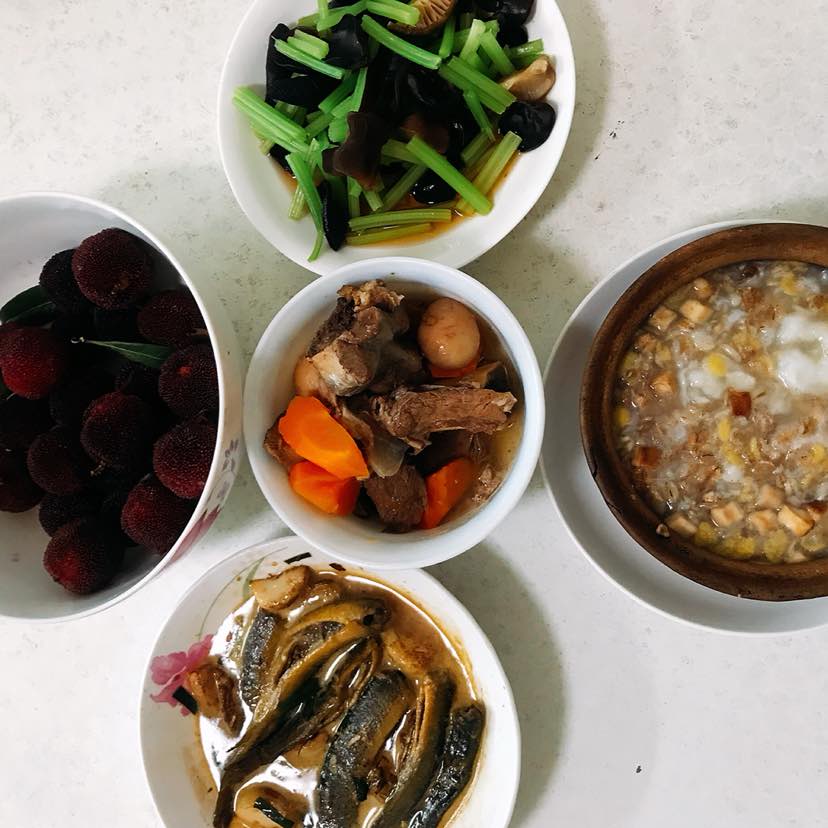 疗后第十天小白2.3,中粒1.5,没发烧,胃口好,睡眠质量好,精神状态也好,医生建议可以观察一天,不用着急打针,OK,除了在家里散步,就剩下吃了,感觉自己是个大胃王,这只是我的晚餐:猪髓骨炖胡萝卜和芋头;燕麦加鸭蛋清(胆固醇偏高不吃蛋黄);芹菜拌黑木耳香菇;红烧泥鳅,水果杨梅。每天五红汤、每天刺参,以及各种水果蔬菜,不管怎么说,希望这次能躲过打针,像🐷一样狂吃,如果狂吃有用,我可以暂时做一只可爱的小🐷,听说只要胖起来,白细胞就能上去,不知道是不是真的,加油加油💪