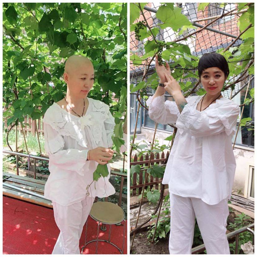 一年前一年后的情景再现!一年前的此时我是那样子的,因为化疗的副作用头发都掉没了,光头,体重100斤!一年后的我是这样子的,重新长出来的头发发质好,厚,体重113斤!所以说生活坏到一定程度就会好起来,因为它无法更坏。努力过后,才知道许多事情,坚持坚持,就过来了。既然我活过来了,就活出更精彩!不忘初心,善良下去,💪💪💪💪💪💪