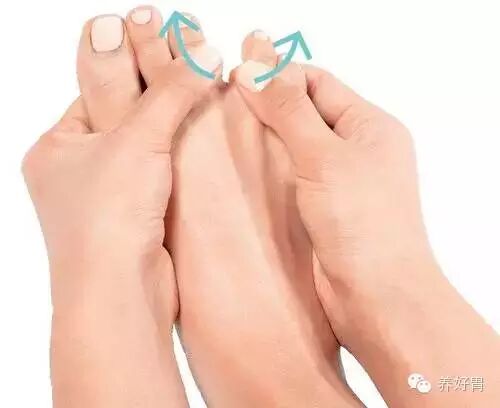 从经络看,胃经经过脚的第二趾和第三趾中间,管脾胃的内庭穴也在脚趾的部位。所以每天睡觉前可以用手按捏脚趾,按摩15分钟左右再入睡。按摩脚趾的时候注意要顺着脚趾的方向按摩(见下图),这样才是疏通经络的方式,可以泻胃火。