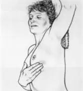 (3)体位配合:位于乳腺下半部分的肿物如果较小或者因乳房较大或下垂而扪及不清时,可以用同侧的手托住乳房,用对侧的手进行扪查;也可以平躺下在肩下垫上一个小枕头进行检查。
