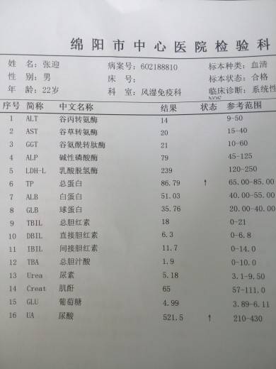 结果好好啊!我的尿酸也高,可医生啥也没说,这两个月也没叫我查,我都不知道是啥情况
