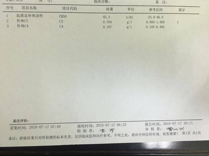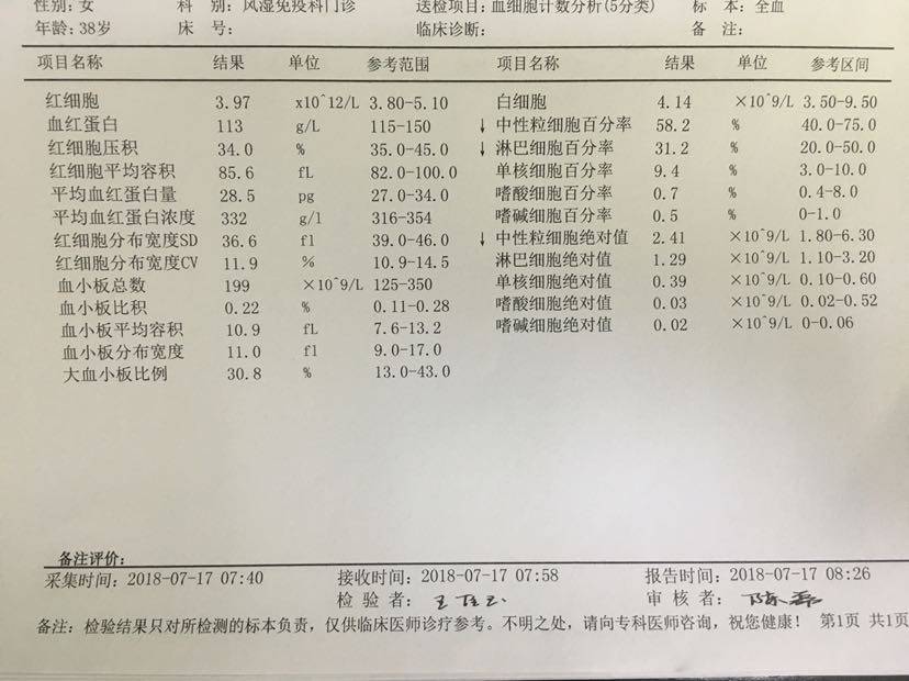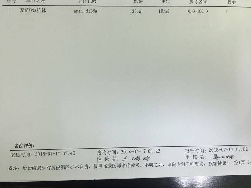 因为抗核小体抗体和抗核糖体抗体的结果昨天才出(都正常),所以17号的复查今天才记录