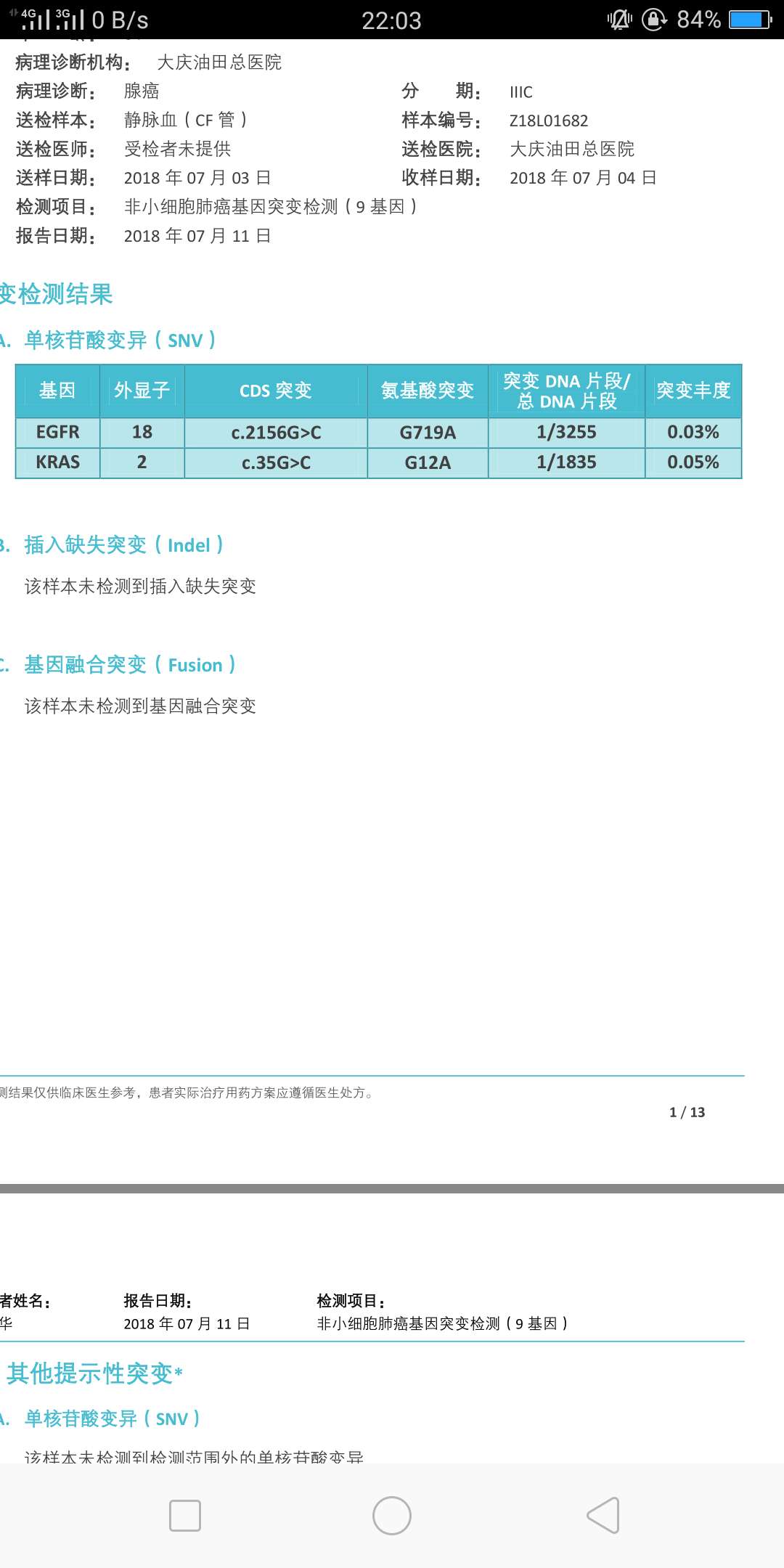 母亲肺腺癌,基因检测结果: EGFR 719A 18号 丰度0.03% KRAS G12A 2号 丰度0.05%,大夫说吃靶向药效果不会太好,怎么办?一个是18号,一个是kras耐药基因,而且丰度很低!