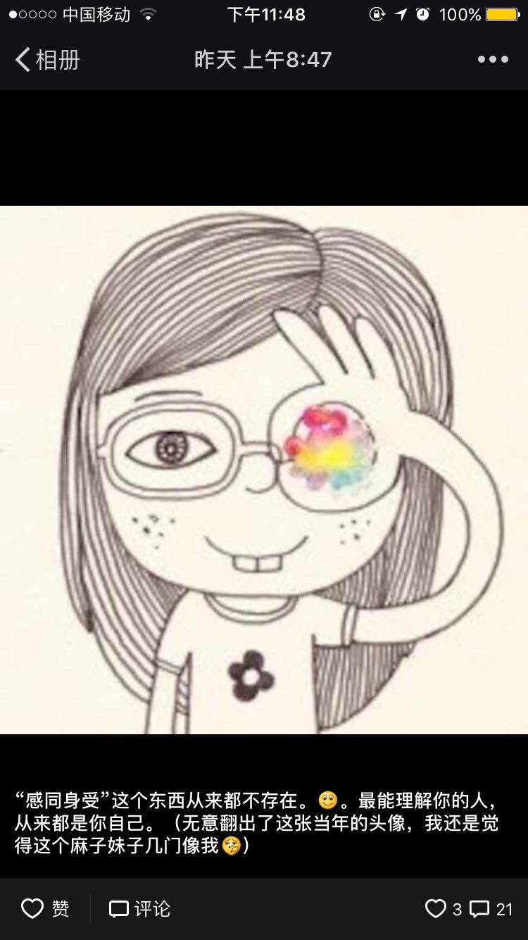 说实话哈 以前我发朋友圈 前任从来不会关注我,管你矫情也好,不开心也罢,都和他没关系。突然有个人,关心你说了什么,心情怎么样,感觉还不错的样子。😂😂😂,,,,好吧我就是这种没出息的熊孩子🐻。