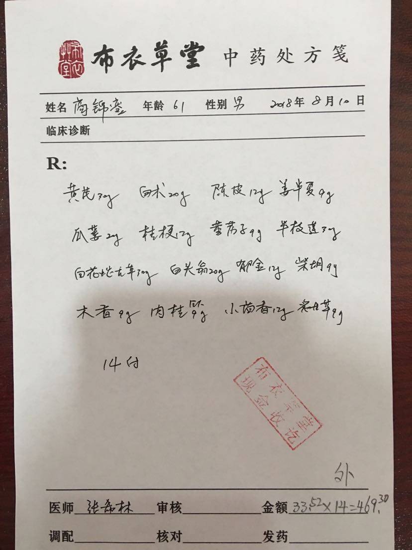 另外去找上次的医生拿了半个月中药调理一下身体付药方,这个就是我之前说过把脉的大师,肝里有问题都把的出来,让我去照个彩超,正好这次复查的时候医生一起给做了,另外我老爸颈椎问题比较大,有没有什么好的方法,这次回家感觉老爸乏力很多,真的心疼……