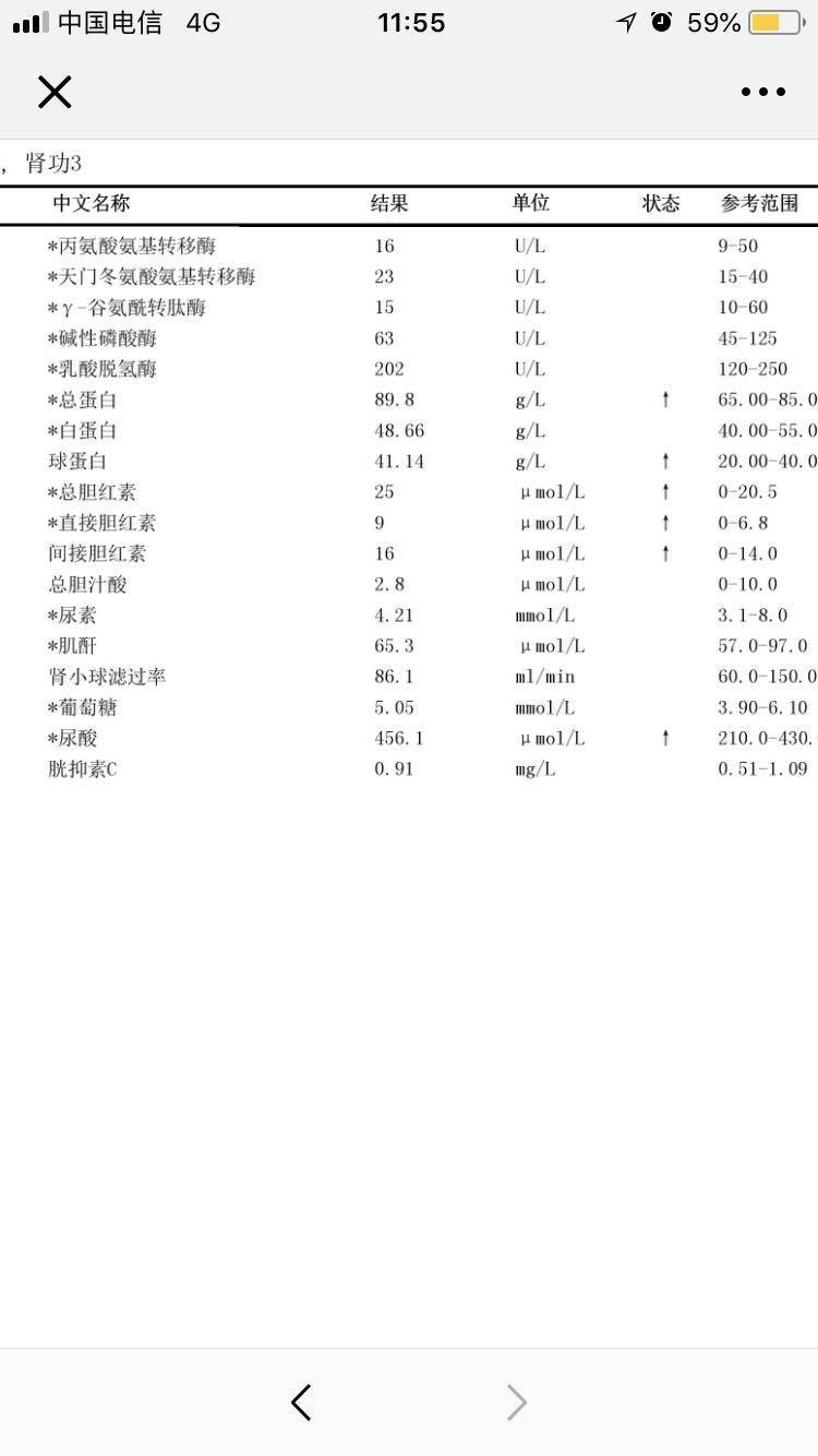 箭头也多了,尿酸高,一直也控不下来。蛋白也有➕➖了