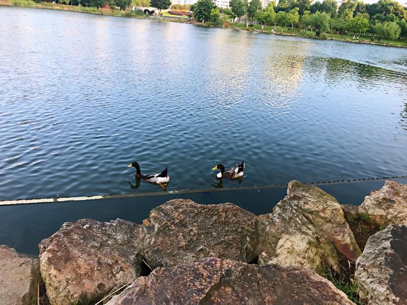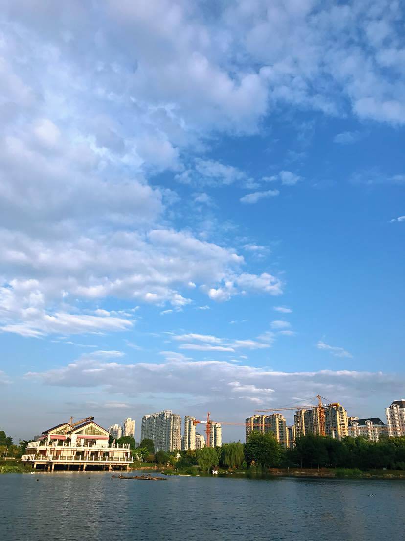 快走后满身的汗,在湖边做做拉伸动作,低头可以看看戏水的鸭子,抬头是蓝天白云,手机里播着我喜欢的音乐:天空之城。现在的生活比起暗黑的治疗期,已经很幸福,哪怕潮热失眠,哪怕光头胖妞,我都要好好珍惜,心怀感恩!