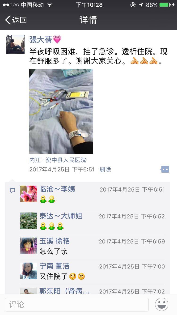 在这个距离第一次透析 一年零四个月零九天的晚上。好嘛,如果以往是因为透析不能接受。不甘于如此一生。那么现在仅仅是因为它的各种并发症。当年,一腔热血要怎么样怎么样。现在也磨平所有棱角。好好的就好。心态崩了。我等你的第六个月,要么你就早点来,要么你就干脆不要来,直接不要好。😔😔😔。其实特别佩服十几二十年的老战友们,我都不知道,到底应该如何继续。如何自处。