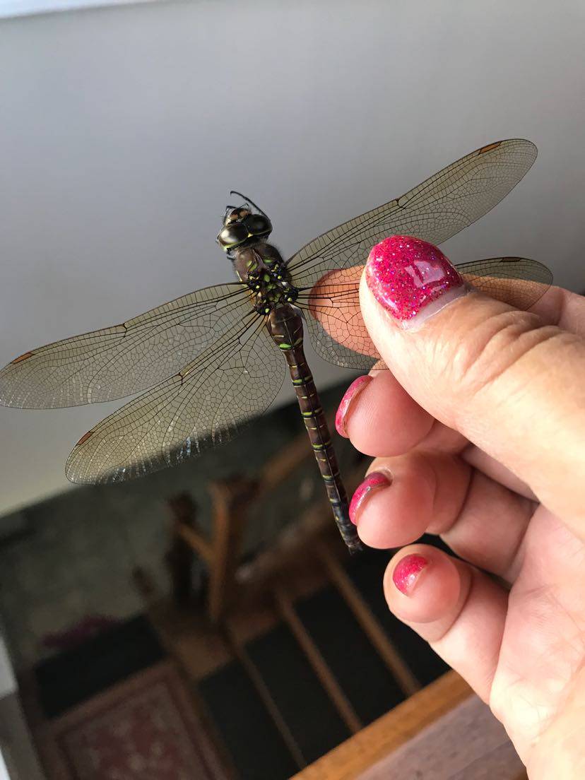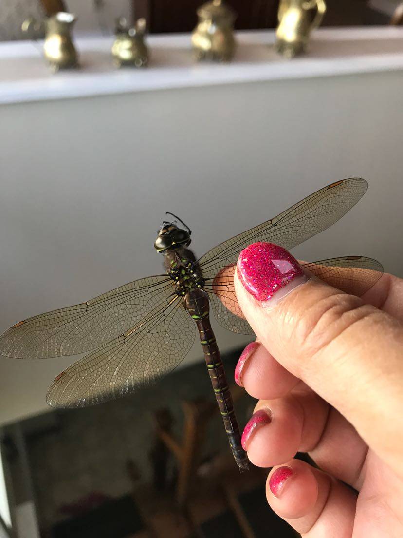 离家俩天去玩,窗户留了一个小缝,进来一只蜻蜓,在英文里叫龙蝶(dragon fly)。 看来我是要交好运了,开心😃 。