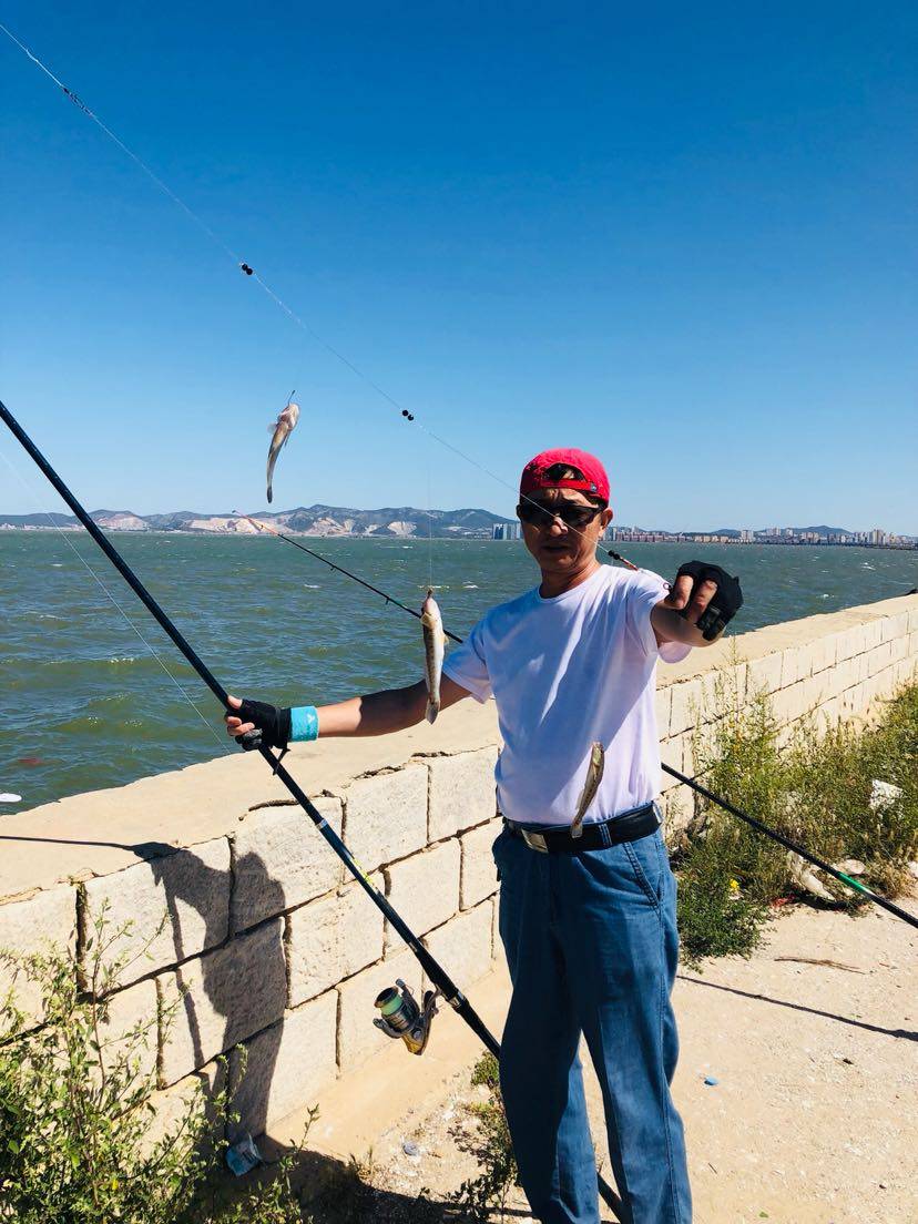 老头发力抛杆,上鱼啦二条🐟又上鱼啦三条😃我们大约玩了三个小时满载而归,驱车🚗回家。