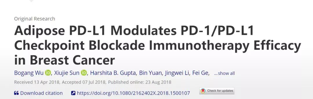 在此次的研究中,吴博刚教授(Wu bogang)及孙秀杰教授(Sun xiujie)等人发现,脂肪细胞会大量的表达PD-L1,影响乳腺癌的治疗效果。
