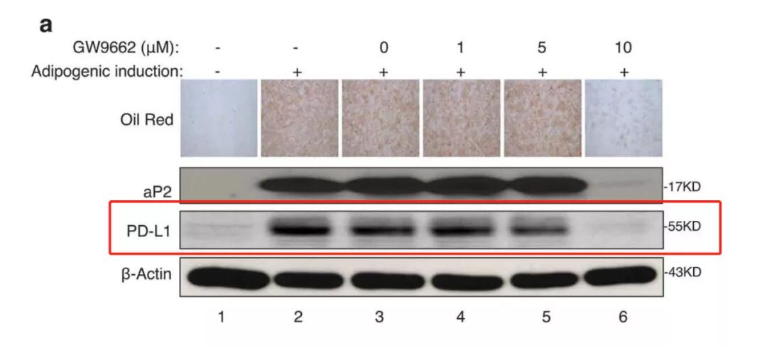 PD-L1的表达水平随着GW9662的浓度增加而逐渐降低,直至消失