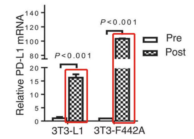 红框内:成熟脂肪细胞表达的PD-L1水平