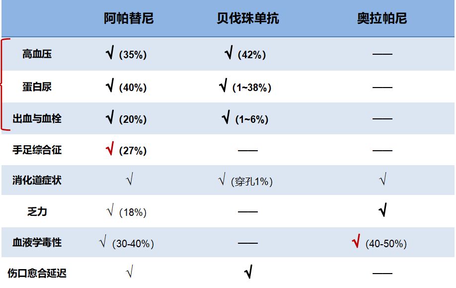 对治疗卵巢癌的患者而言,使用这三种药物,可能出现的不良反应主要集中为以下几点。