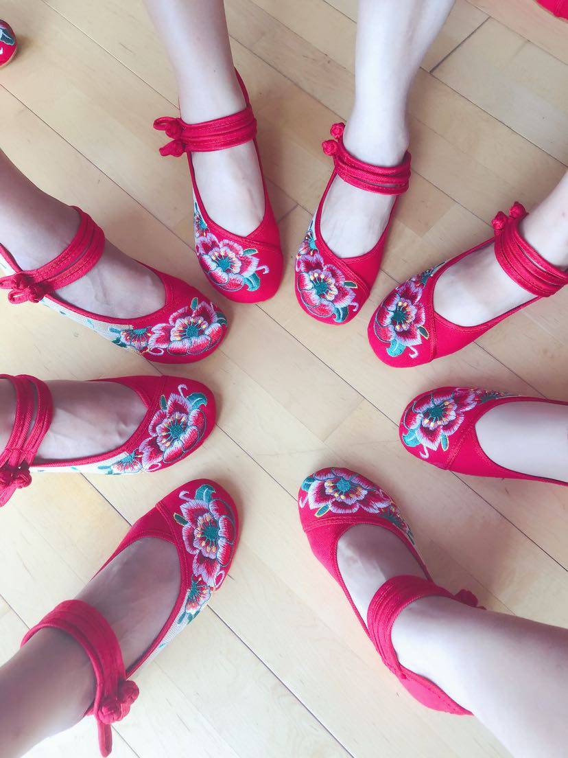 白天有点忙,没时间锻炼,晚上赶紧锻炼一下。舞蹈队每人发了一双舞鞋,挺漂亮的。