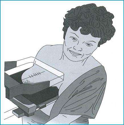 为了实现乳腺癌的早期发现,定期的进行乳腺钼靶检查是行之有效的方法。由于35岁以下的妇女乳腺较致密,钼靶检查常不易发现病灶;而且此时的乳腺组织对放射线的损伤较敏感。故乳腺X线摄影一般不适于35岁以下的普查妇女。对于50岁以上的妇女,我们建议每年一次双侧乳腺钼靶检查。若有乳腺癌高危因素的妇女,如家族乳腺癌病史、既往乳腺癌史、良性肿瘤及活检史,或者月经初潮13岁以前、第一胎足月生产30岁以后、绝经在55岁以后等,建议40~49岁阶段就应该开始每年一次的乳腺钼靶检查。在定期乳腺钼靶摄影的同时,还可以结合每月一次的自我检查和定期的临床体检。