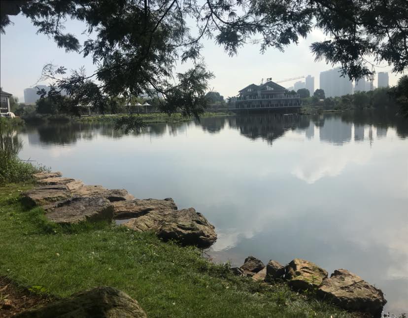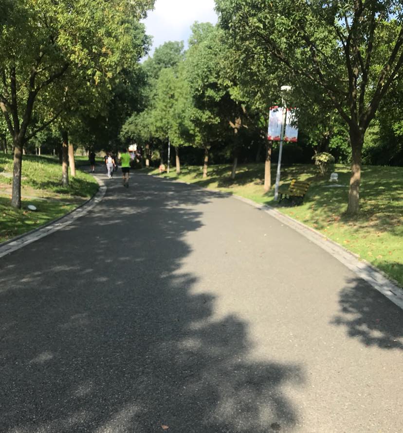 完成两圈后就走到湖边树荫下,做一些拉伸动作,这个时候就听舒缓的钢琴曲,凉风不时地吹过来,心满意足。
