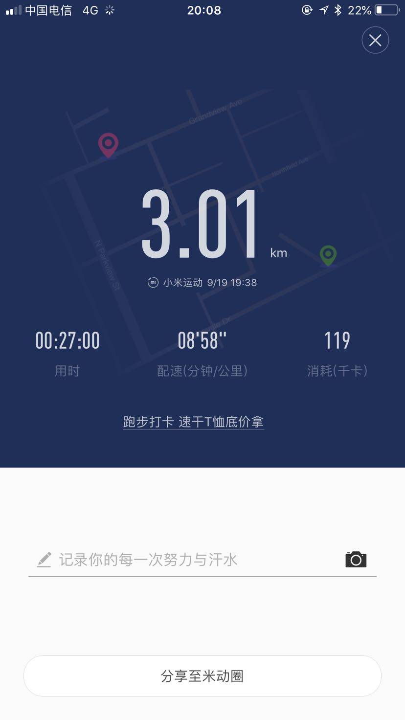 娃今天终于好了,趁着她和小伙伴玩的时候,我来运动一下,今天温度有点高,只能3公里了。