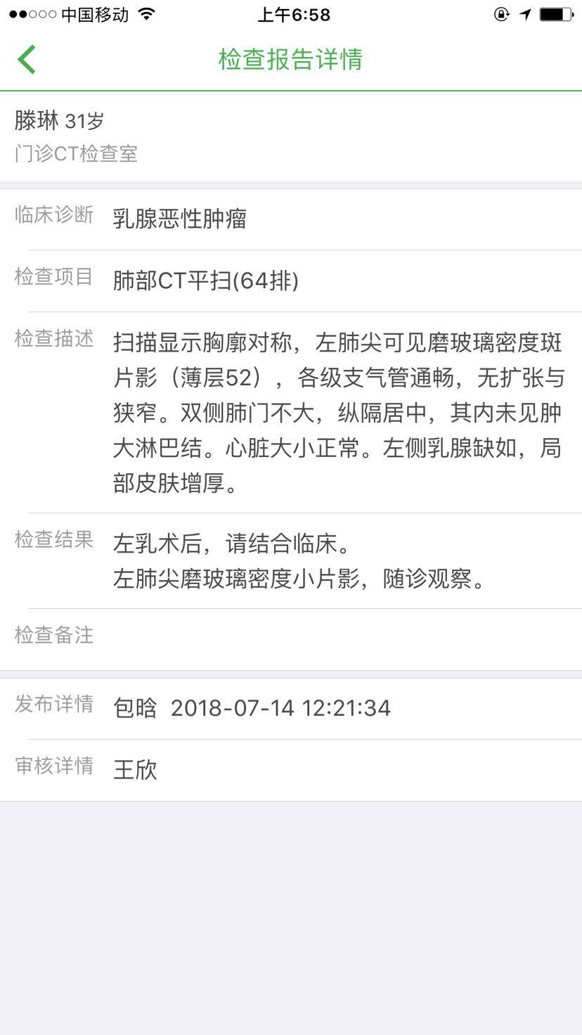 面对!我彩超检查出患处肺结节,等下月ct平扫.