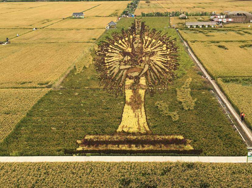 今天是秋分,又叫丰收节。坐轻轨,换地铁,再换稻梦空间专线去沈北兴隆台(锡伯族)镇的稻梦空间景区游玩。稻田画是锡伯族萨满文化的一部分。用稻子种出来的画也是惟妙惟肖。画幅巨大,只有登上高塔才能看出画来。中午在公园里的人民公社大食堂吃了农家饭。回来之前又去葡萄园采摘。这个丰收节过得挺有意义!