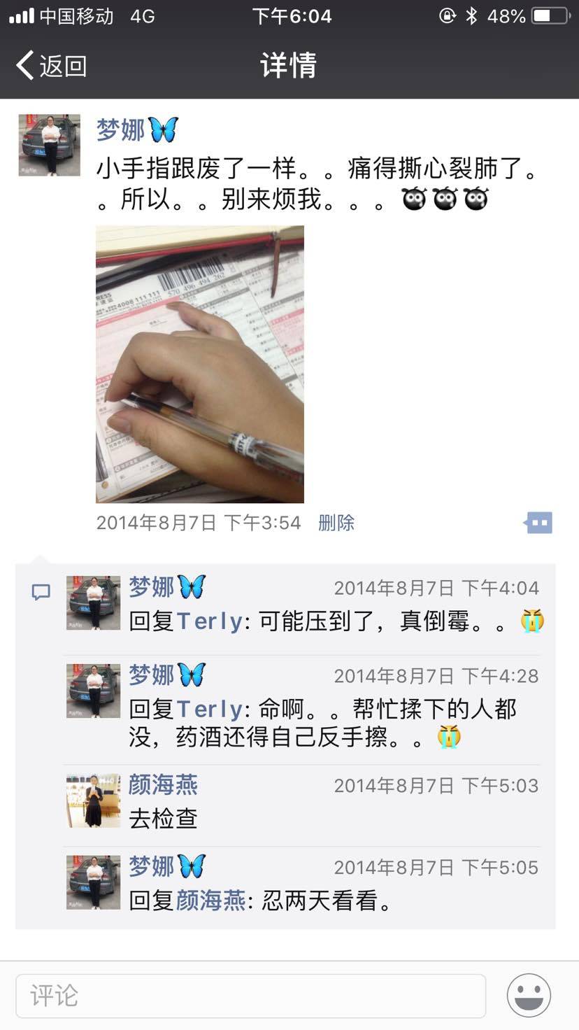 你们老说东痛西痛,我也一样,常常各个位置痛,手指算小痛,还能发个圈讨个人心疼。别的地方痛起来,那滋味,真不忍回味。。几乎都是靠忍过来的,实在忍不了,吃止痛药。印象中,吃过两次。。发这个朋友圈后的四天,8月11日,全身所有关节同时爆发,直接瘫痪了。。。