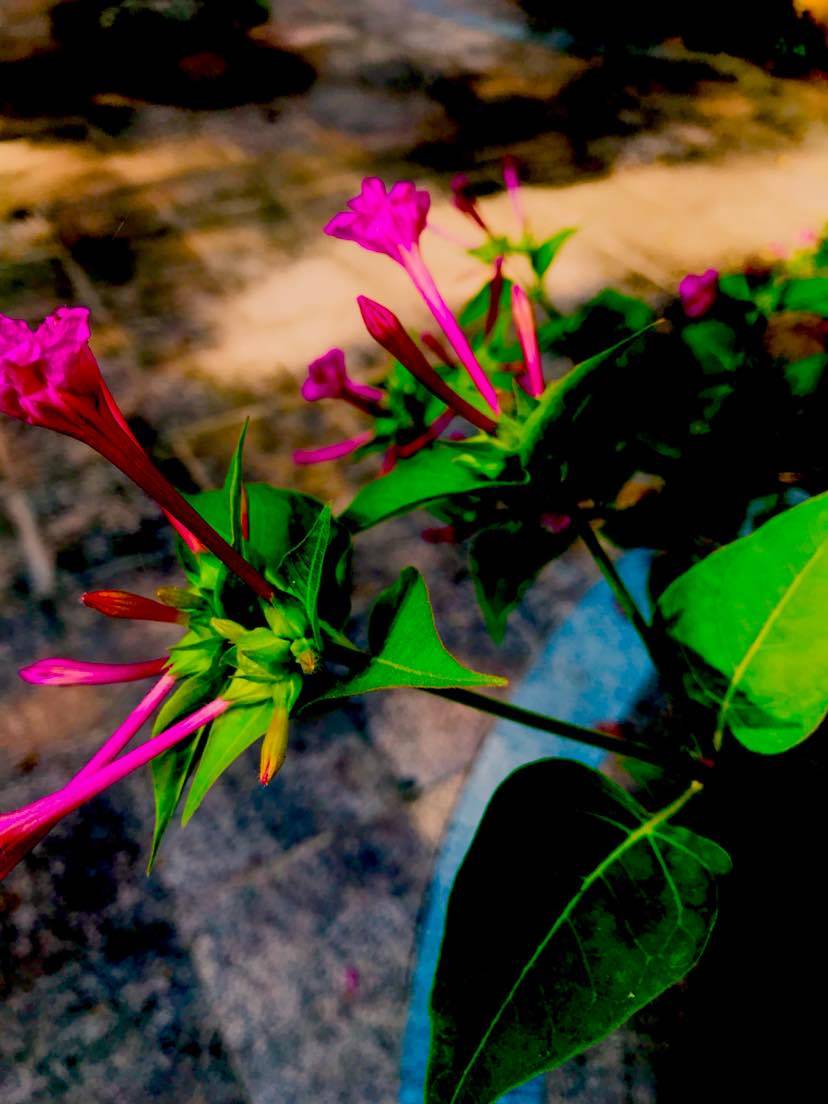 傍晚紫茉莉飘出一阵阵幽香,它也叫洗澡花,煮饭花,因为在农村路边,院子篱笆旁每到黄昏大人做饭,孩子洗澡的时候,这些花儿争相开放,散发出阵阵芳香,所以这花儿学名夜来香。