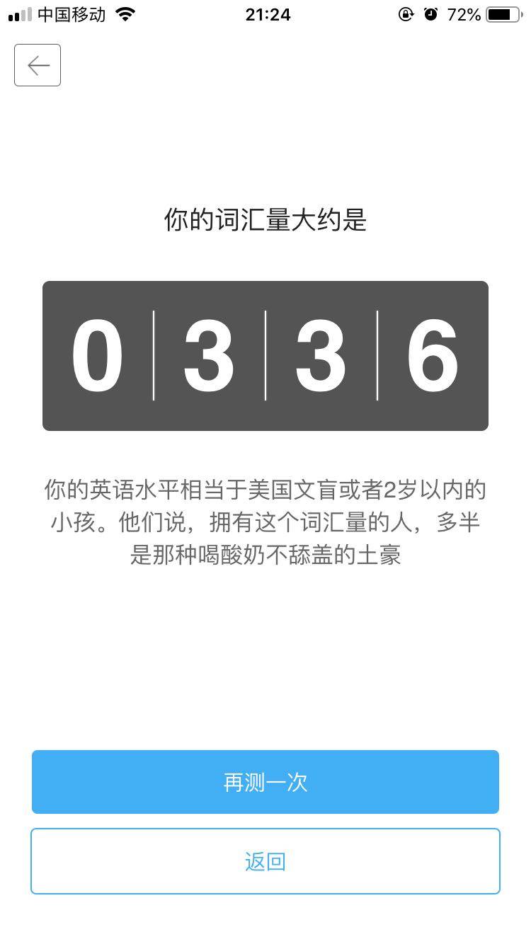 心情太紧张,单词测试一下[呲牙][呲牙][捂脸][偷笑]结果是这样滴!今天谢谢给出各种建议看法以及经历的亲们!变了又变又纠结,跟父母说说再分析一番,就那样吧!利弊都有的,不试也不知道哪是适合自己的,就顺其自然吧,再想想其实了解的半知半解越多越复杂,或许傻傻的糊涂一点越简单,今天办住院明天抽血化验后天布管化疗,接下来愿顺,别再有纠结的事要去选来选去了,折腾不起呀……